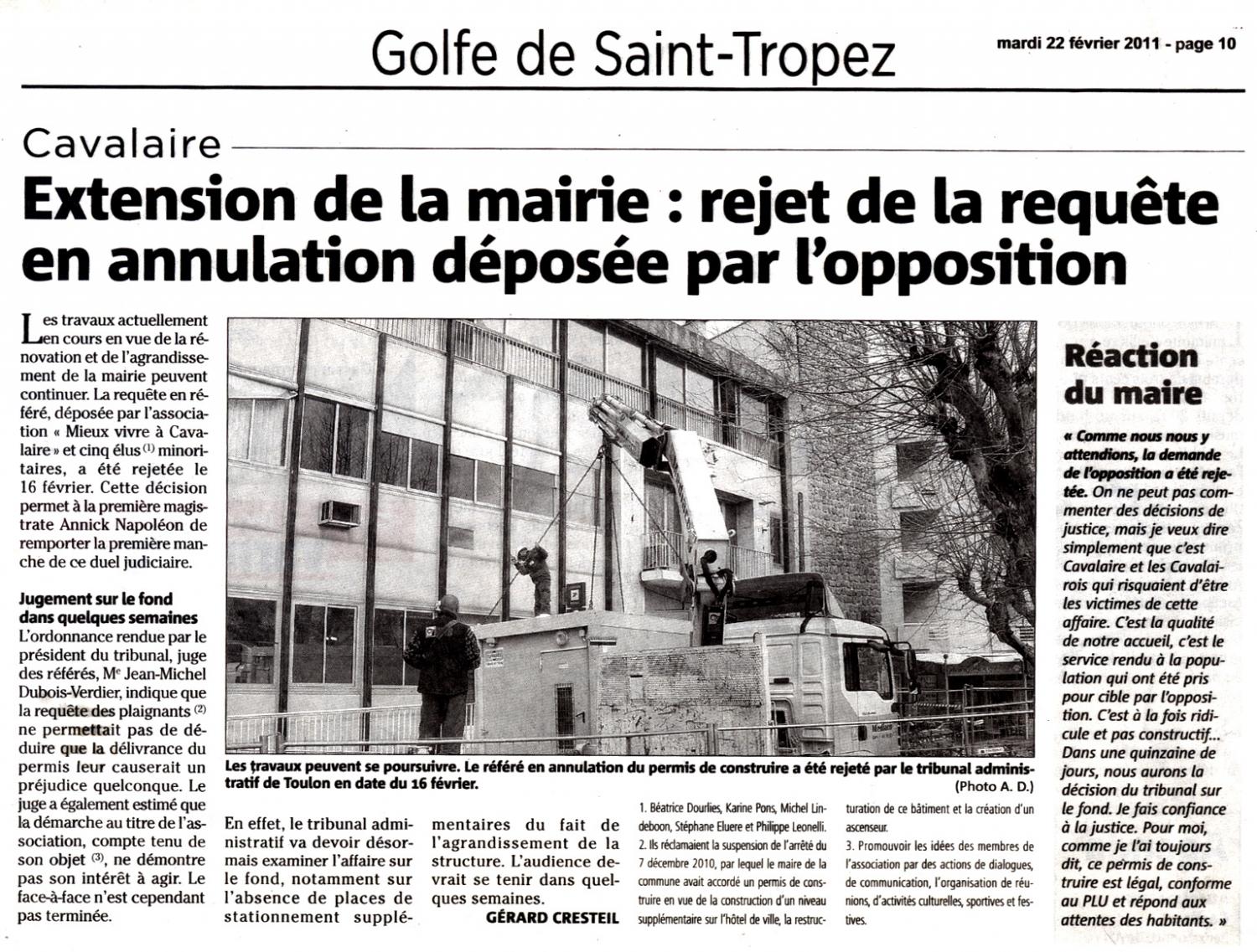 Extension de la mairie : rejet de la requête en annulation...