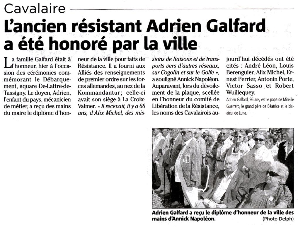 L'ancien résistant Adrien Galfard a été honoré par la ville