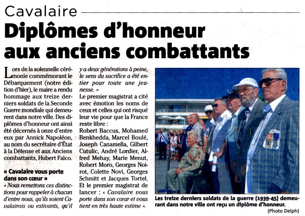 Diplômes d'honneur aux anciens combattants