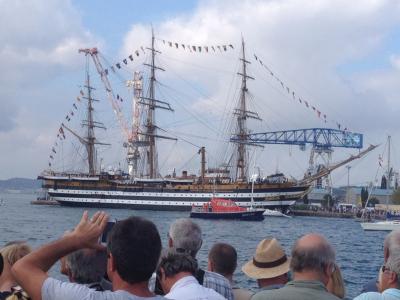 A 12 heures, sur le port de Toulon, juste en face du stade Mayol, j’ai assisté à l’inauguration par Hubert Falco, Sénateur-maire de Toulon, de l’évènement majeur de cette rentrée 2013 dans notre département : la Mediterranean Tall Ships Regatta.