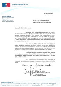 Soutien personnel de Georges Ginesta, Député du Var et Maire de St-Raphaël