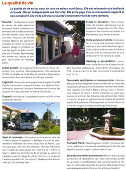 La qualité de vie est l’enjeu n°1 de tout programme électoral qui se veut ambitieux et à l’écoute des attentes de la population.