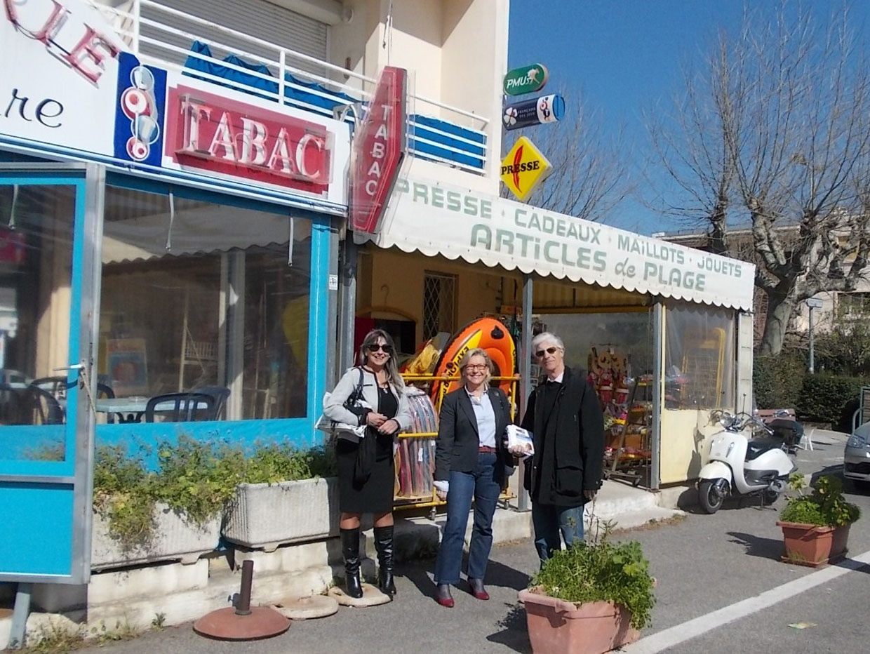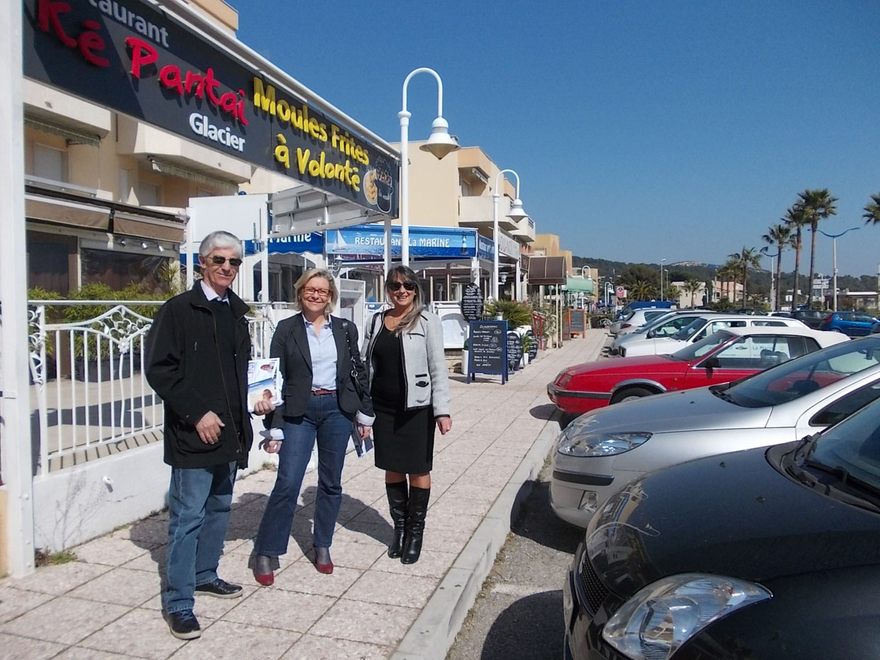 Annick Napoléon et ses colistiers hier, à la rencontre des commerçants de la Promenade de la Mer et du Parc de Cavalaire