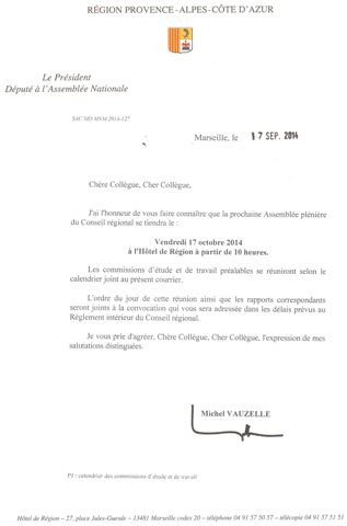 Session de rentrée à l'Assemblée RégionaleLes élus de notre Région Provence Alpes Côte d'Azur se réuniront à nouveau le 17 octobre prochain en Assemblée Plénière à l'Hotel de Région Marseillais à l'invitation du Président Michel VAUZELLE.