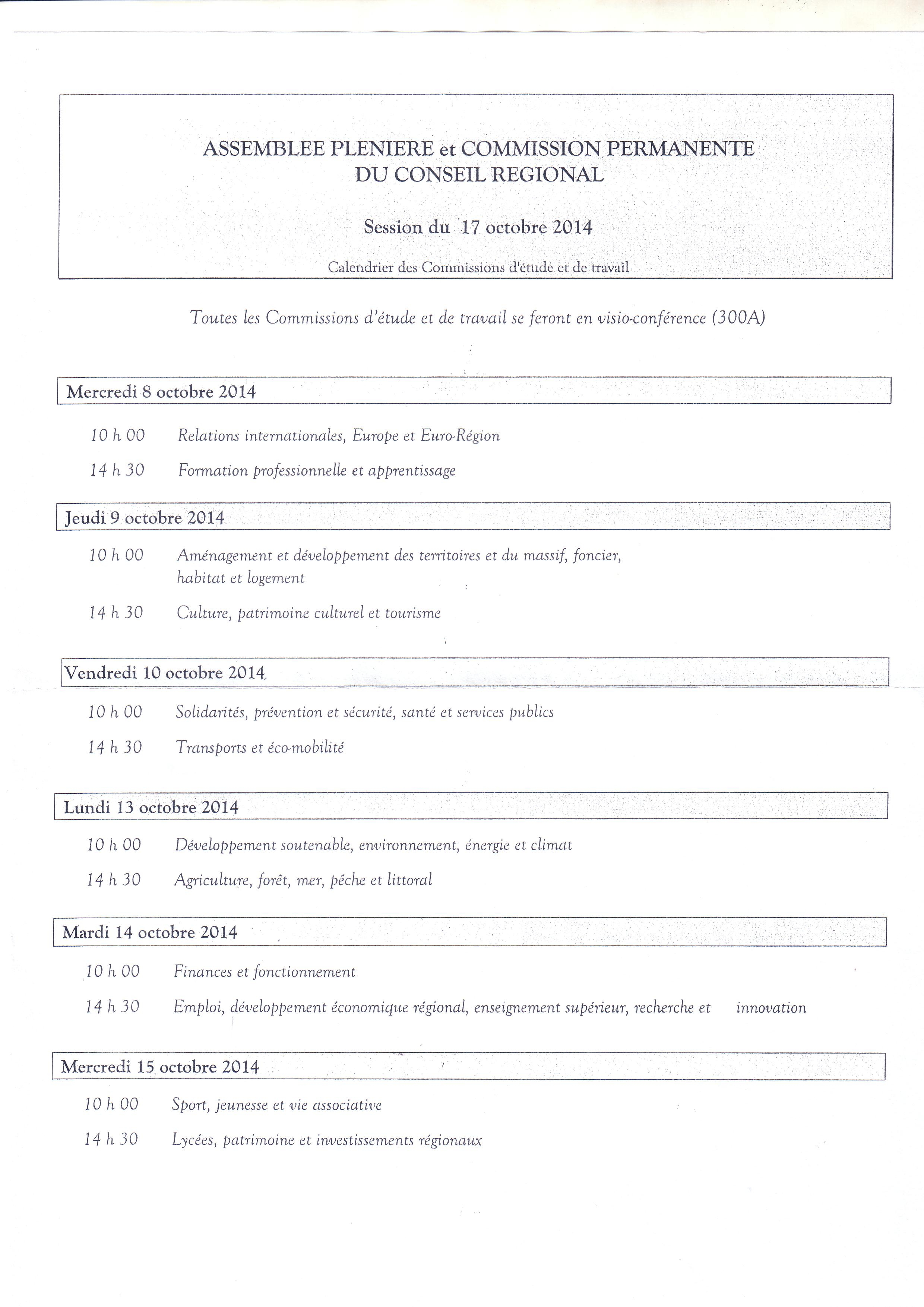 AGENDA DES COMMISSIONS
