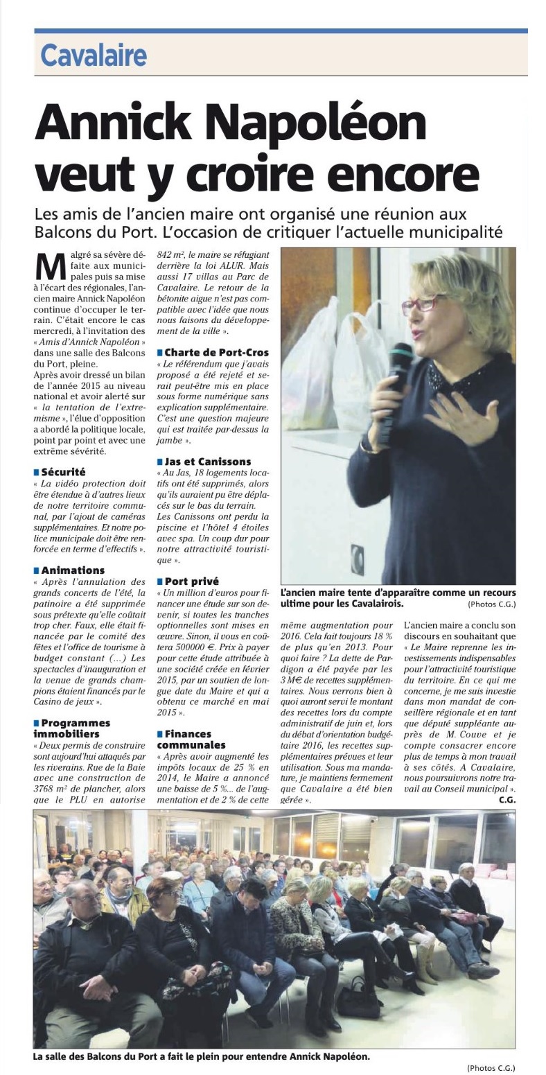 VAR-MATIN DU 22 JANV. 2016 : COMPTE-RENDU DE LA REUNION « LES AMIS D’ANNICK NAPOLEON » LE MERCREDI 20 JANVIER 2016