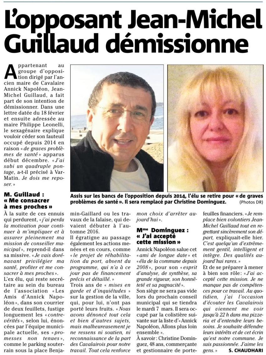 Bienvenue à Christine Dominguez, à qui revient aujourd’hui la charge de remplacer notre ami Jean-Michel Guillaud au sein du Conseil Municipal de Cavalaire sur mer.