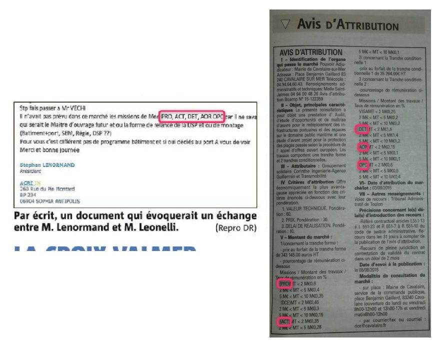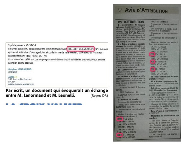 Ci-dessous vous trouvez la copie du mail de Stéphan LENORMAND au maire, diffusé ce matin dans Var-Matin, et l’avis d’attribution du marché diffusé dans le Var-Matin du 10 août 2015.