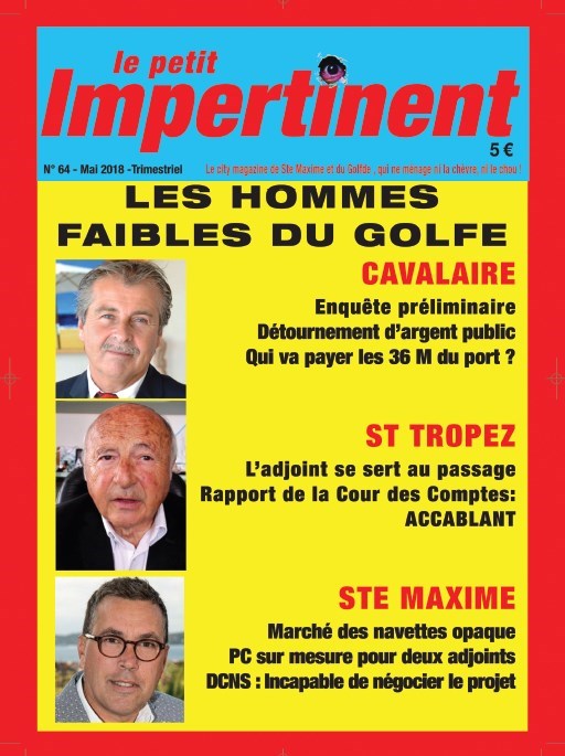 Ci-dessous vous trouvez la couverture du numéro du mois de mai du mensuel LE PETIT IMPERTINENT dans lequel sont relatés, entre autre, les faits concernant le marché du port de Cavalaire.