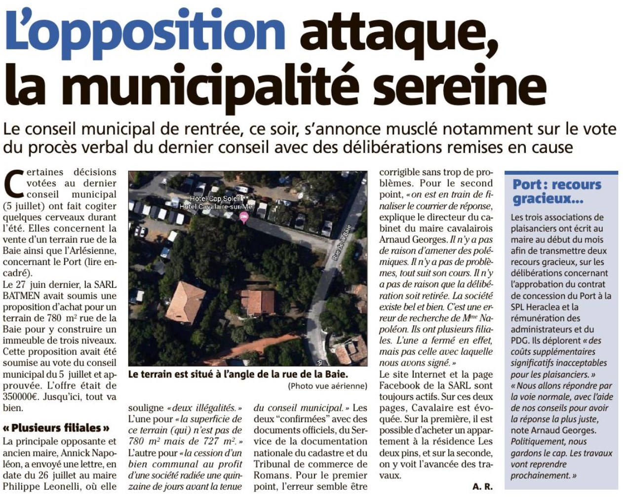 Nous espérons obtenir enfin des réponses claires à notre courrier adressé le 26 juillet en mairie (dont vous pourrez prendre connaissance en cliquant sur le lien) lors du Conseil municipal de ce soir …