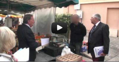 Le député Jean Michel COUVE en campagne dans la vieille ville de Sainte Maxime 19 avril 2012.