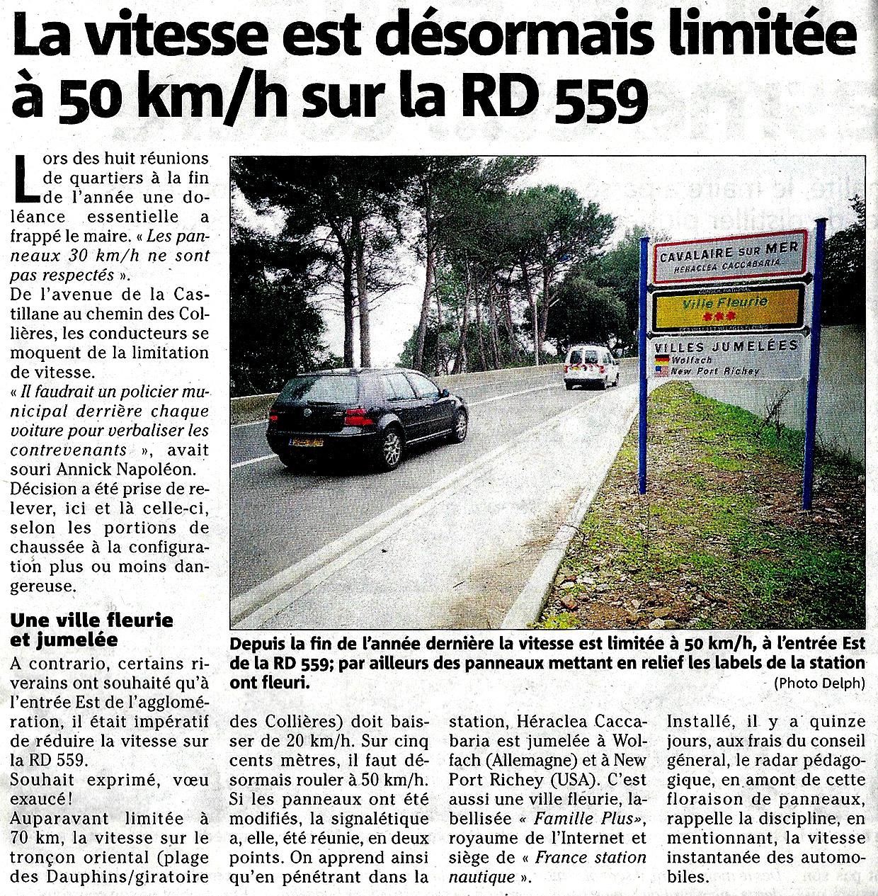 La vitesse est désormais limitée à 50km/h sur la RD 559