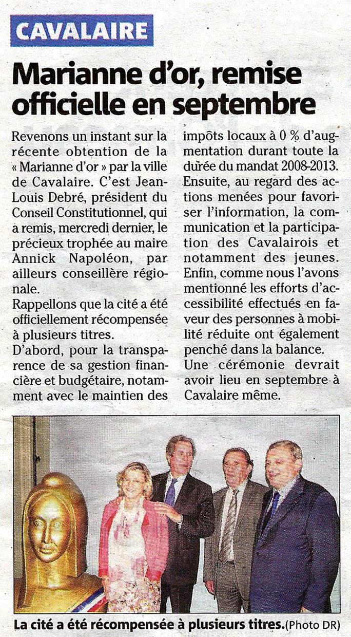 Marianne d'or, remise officielle en septembre